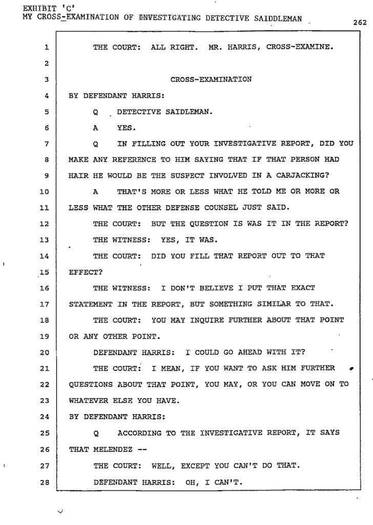 At the trial, although I could not prove witness tampering, Melendez’s non-identification transformed into a semi-identification. Upon questioning by the prosecutor, all of a sudden, Melendez had actually recognized me in the photographic six-pack and told the detective if I had curly hair then I would look like the person who robbed him.