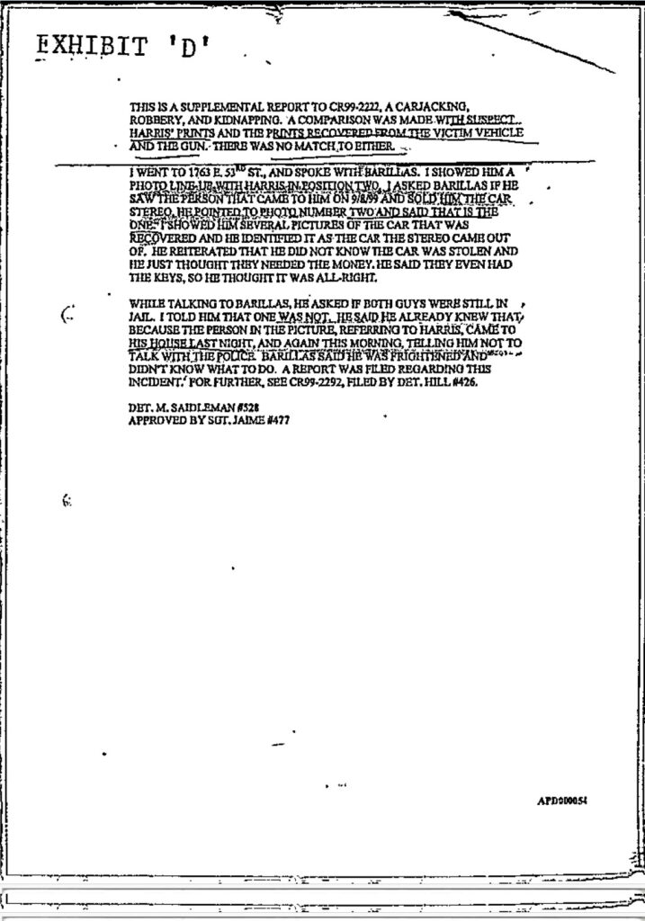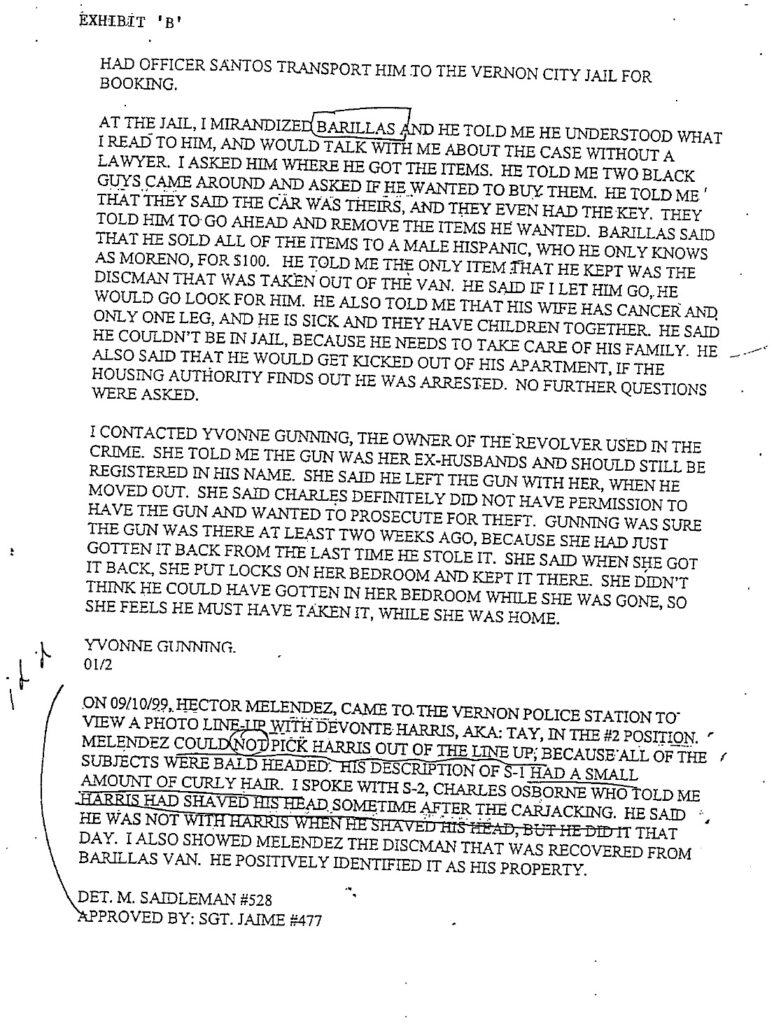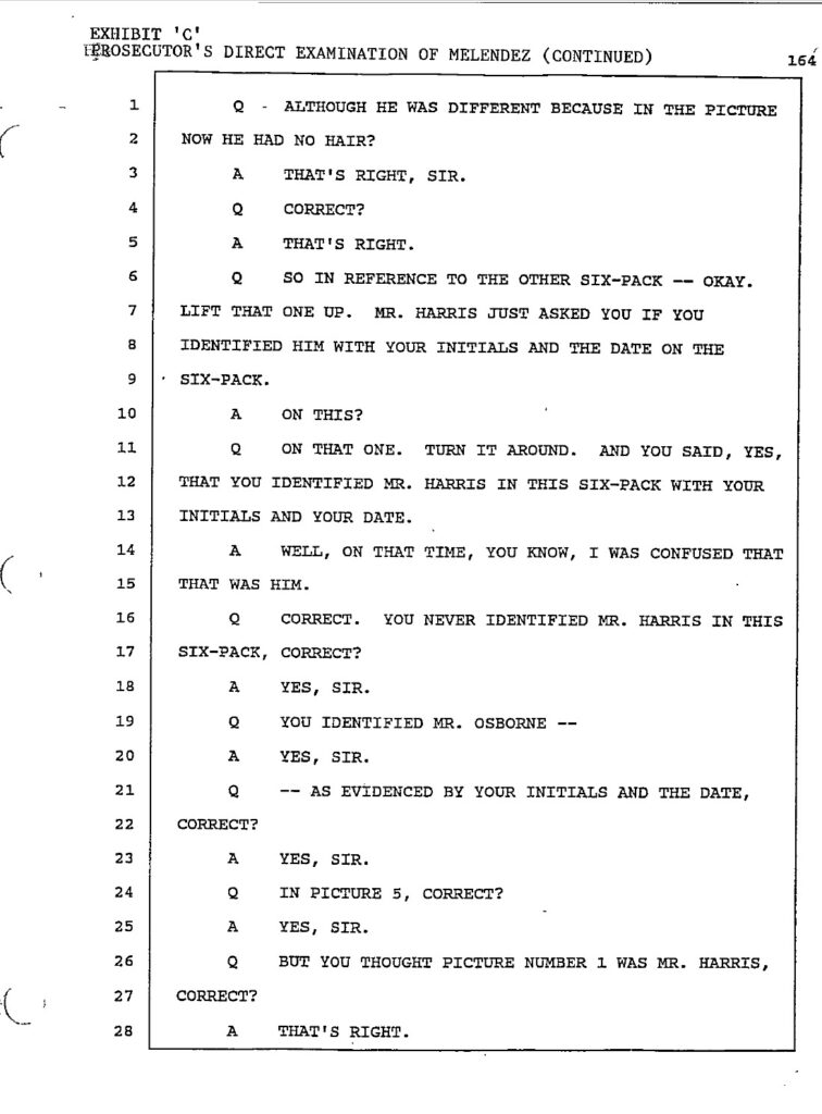 The detectives showed the victim Hector Melendez several photographic six-packs, one of which I was included, but he did not pick me out according to the police report. Charles Osbourne, my so-called codefendant, supplied another smoke screen to explain this away by claiming I shaved my head after the carjacking.